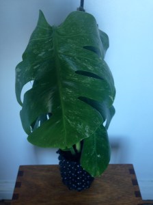 There has been a lot of house plant tending going on of late during the cold winter weather. I was given a cutting of Monstera deliciosa (Swiss Cheese Plant) which I am trying to root. It is a variegated strain (actually more speckled) which means it is not as strong growing as the normal green type, it is planted in a little Air-Pot and is holding its own though looking a little droopy, I hope the aerated soil in the pot will be what it needs to get well rooted without rotting. it is touch and go at the moment, but I am really rooting for it (groan)! As this plant matures it will develop very thick aerial roots, which wave around looking for tree trunks to grab. Because of this unusual type of root I will be watching with interest to see how it grows in an Air-Pot. It is possible that air-pruning completely fails to occur and that roots simply thrust out through the holes in which case it will go into a normal pot.