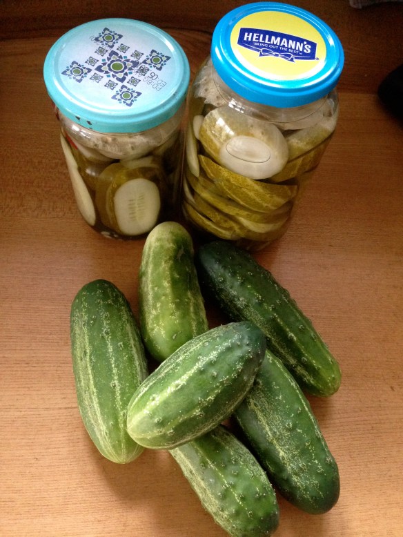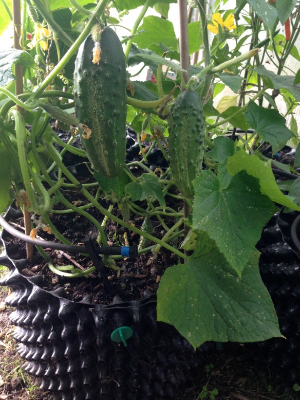 I have been impressed with the amount of cucumbers a couple of Air-Pot containers can produce. Enough to eat loads in salads, make endless gazpacho soup and also pickle in vinegar.