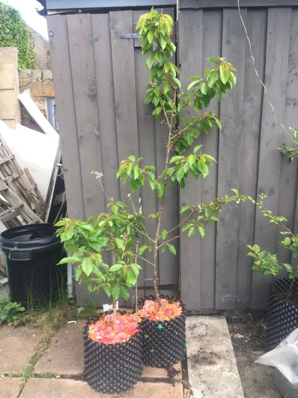 Two cherry trees which had tiny root balls when I bought them two years ago have established well in their Air-Pot containers and have blossomed for the first time this year. Commercial growers do get good crops from container grown cherry trees so it will be exciting to see how these do.