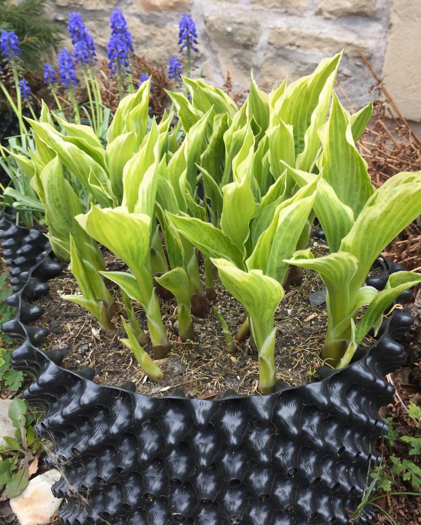 Once again the Hostas are thrusting up, looking like a miniature forest. Every year they get get more vigorous and more densely jammed into the pots. Best of all they do not suffer from slug damage. We think the side of an Air-Pot is a bit of an obstacle course for the slimy pests.