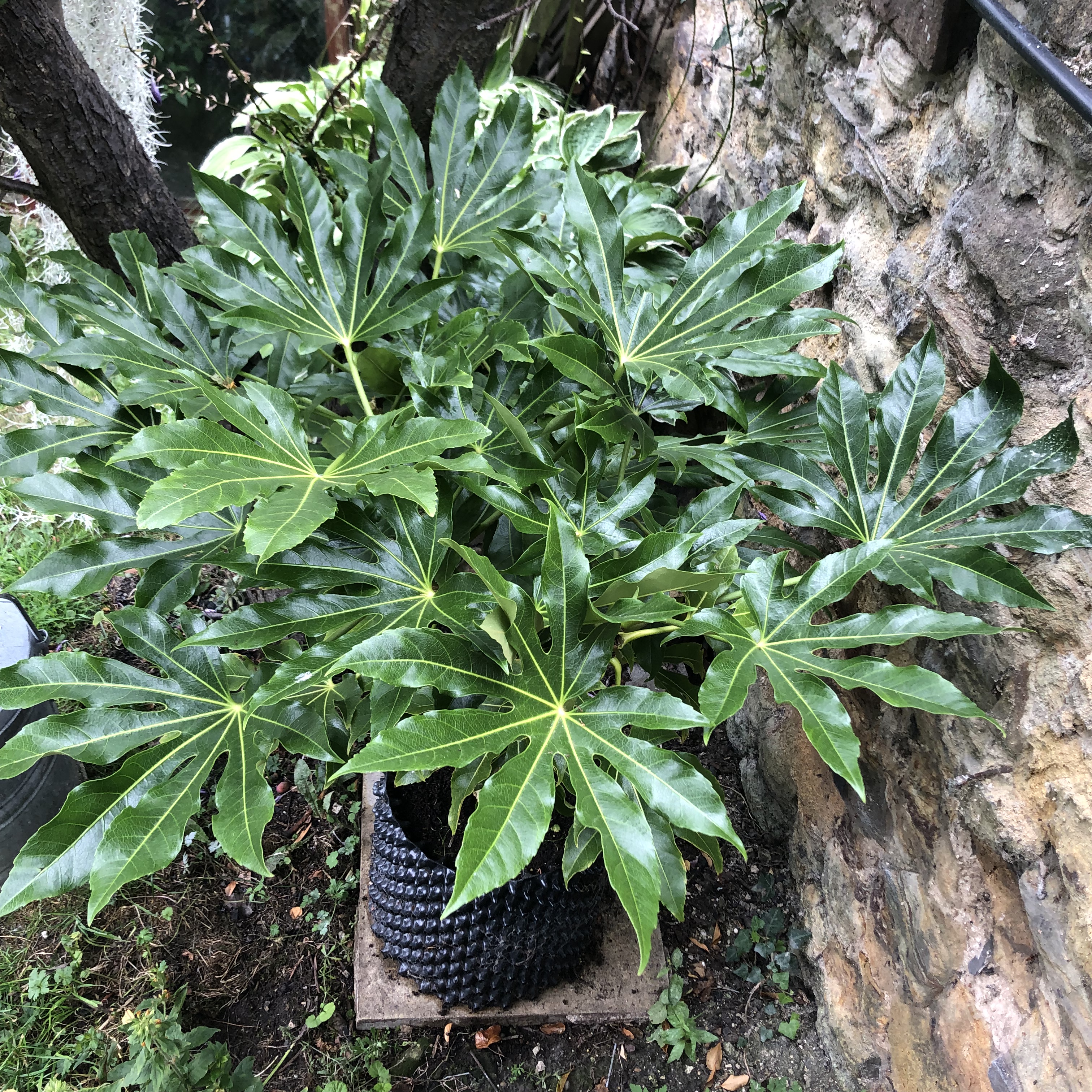 Plants in pots are actively growing now Summer is here. A Fatsia japonica which has not yet found a place to be planted in-ground has been moved around the garden for a few years and recently found its happy place in my shadiest spot under trees against a wall. This relative of ivy now has big glossy dark green leaves which look much healthier than the yellow and washed out appearance it had developed in full sun, sometimes it is better not to be in a hurry to plant out.