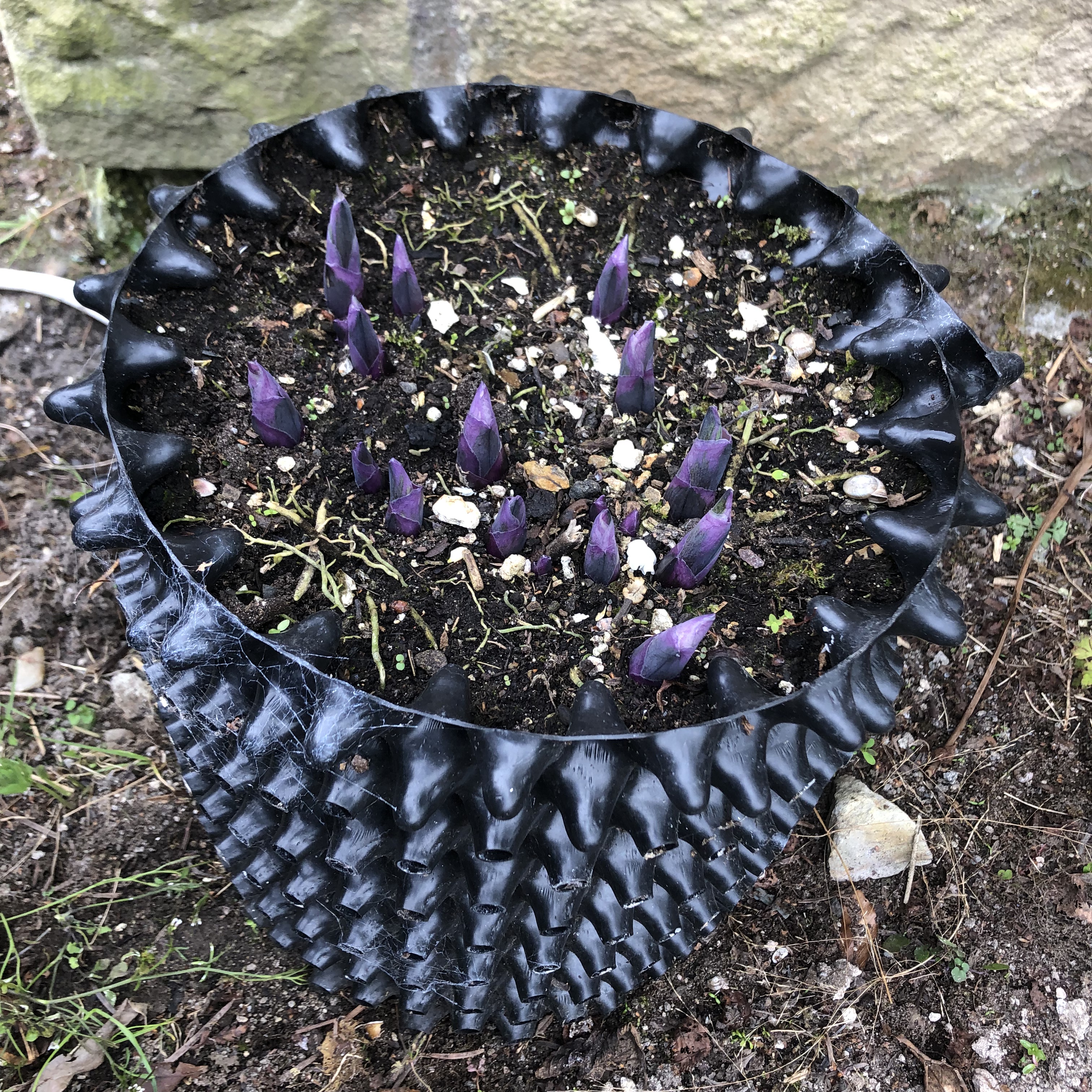 Also impressive are the succulent looking purple hosta shoots which are strongly pushing forth, quite a clump now from a single offset established in a pot a couple of years ago.