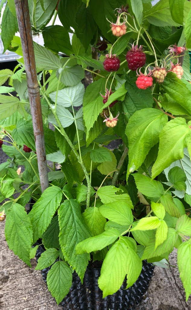 As an experiment some raspberry canes were planted in an Air-Pot and are proving productive. However they are greedy plants so may not be happy in the same pot long-term. Building up the plant for a year in an Air-Pot container then planting out might be a good strategy avoiding the less productive year which follows setting out bare root canes in-ground. A few strong Air-Pot grown canes could be brought on for a season ready to fill gaps in the plot with established clumps. Of course container growers could just move raspberries up to bigger pots or divide and multiply to maintain vigour.