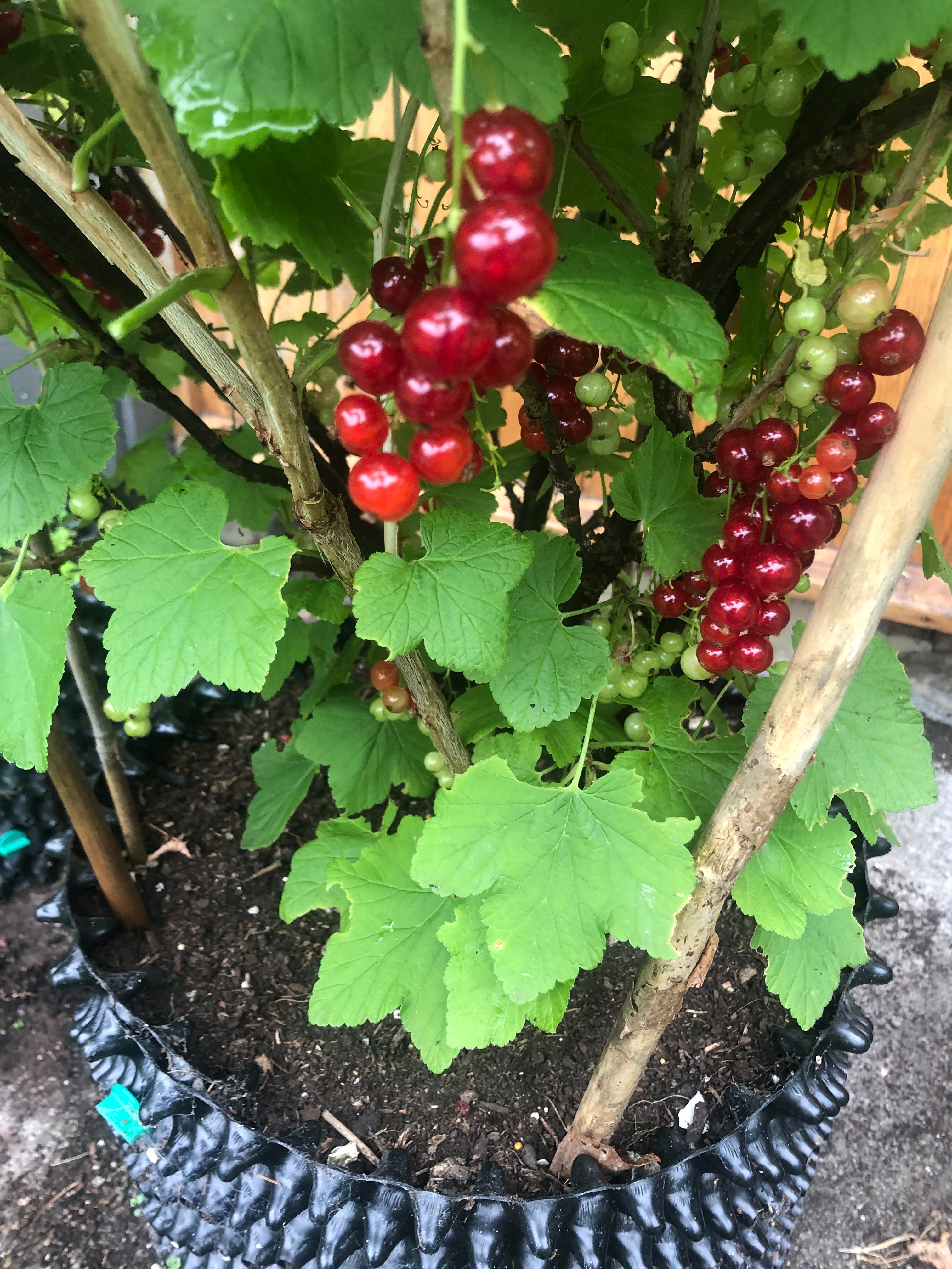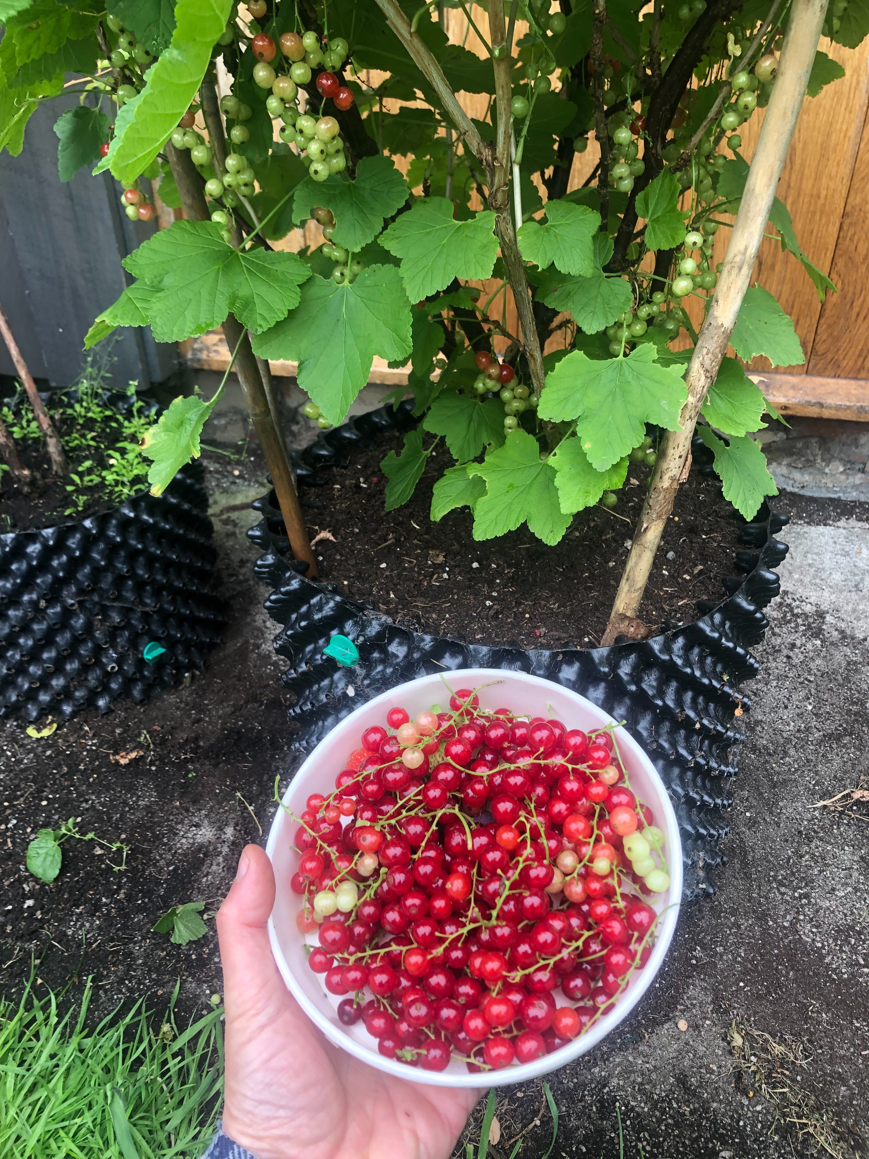Plantings of soft fruit bushes such as blueberries & currants in large Air-Pot containers have done well for many years. The workers at the Air-Pot factory also benefit from strawberries in an Air-Pot trough at this time of year – only the early arrivals get the pick of the crop! My redcurrants are looking beautifully jewel-like but netting is essential to protect from hungry birds.
