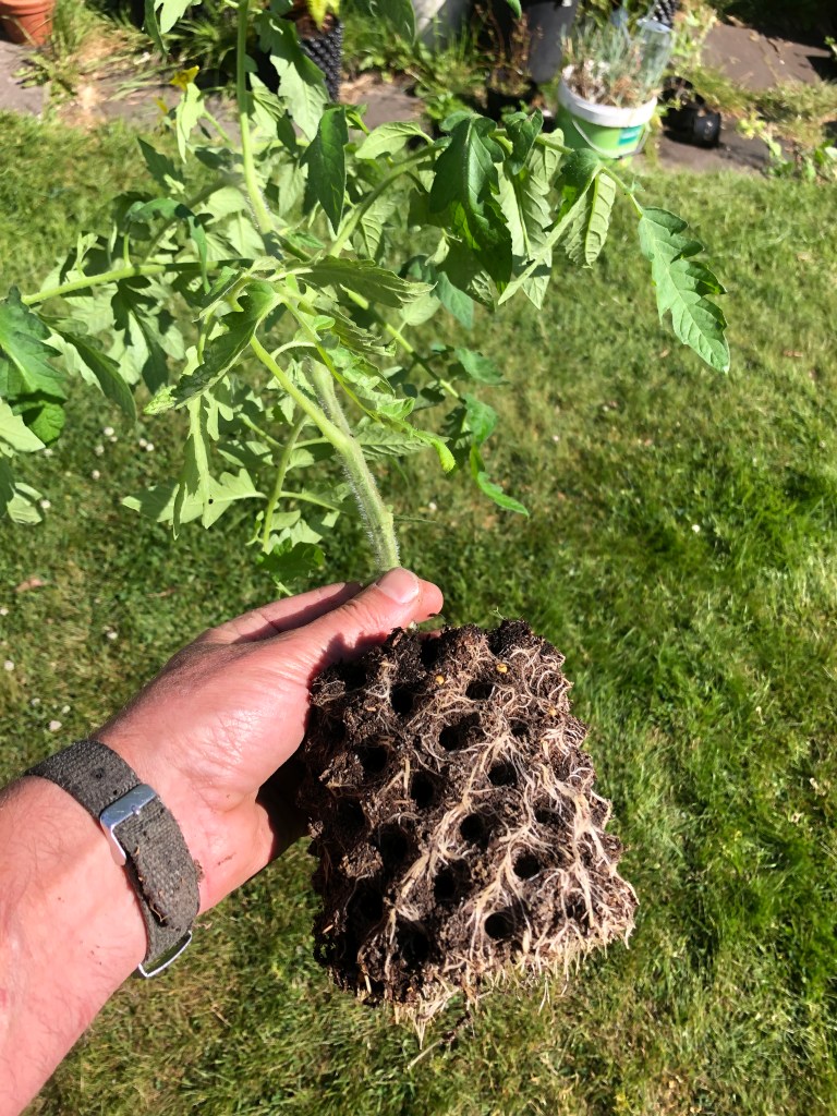 The healthy outward pointing roots are ready to burst out into their new home and power the continuing health and growth of the plant.